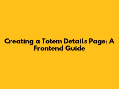 Creating A Totem Details Page: A Frontend Guide