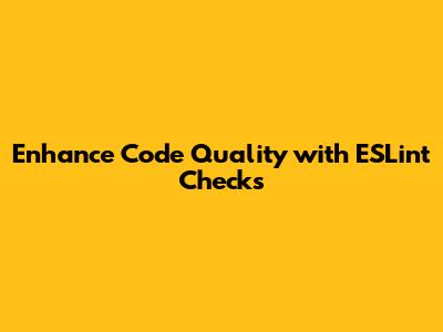 Enhance Code Quality With ESLint Checks
