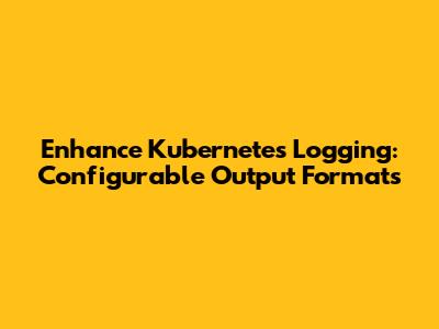 Enhance Kubernetes Logging: Configurable Output Formats